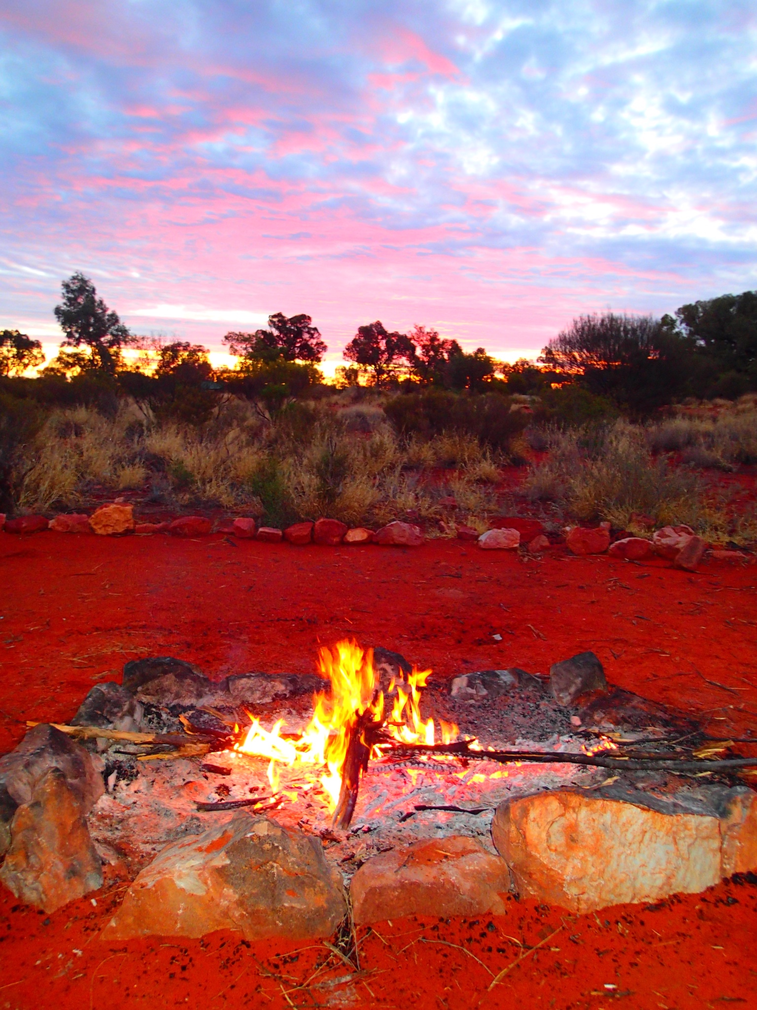 The second night we camped out under the stars. Sadly the night was mostly cloudy so we didn't get to see the amazing remote country night sky. But it was still so refreshing to lie under the open canopy of sky in the fresh air to see the moon and shifting clouds with the occasional bright spark of star. Our whole group slept in swags with our feet pointing inwards towards a central slow burning fire. It was a great way to enjoy our last night in the outback