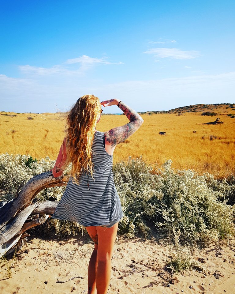 Denham and Shark bay was our next destination. We had a great quiet spot close to the beach here, although super windy, we were very happy to spend another 2 nights here. We went out to Monkey Mia in the morning, spent some time in the water, and spotted many dolphins and fish frenzied pelicans. Back to Denham for the afternoon, we found the water to be amazing in colour and the clouds just right for some colourful cloud and ocean photography! Luckily I had my gorgeous model of a backpacking friend to pose for some good shots. Thank you Jocy!