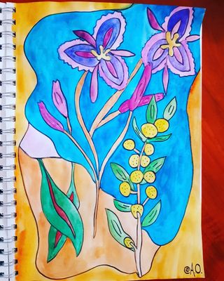 The first painting is from a colleague of mine John Eden who has painted Karijini National park in the most glorious colours. One of my mosaics and a little painting I did recently.