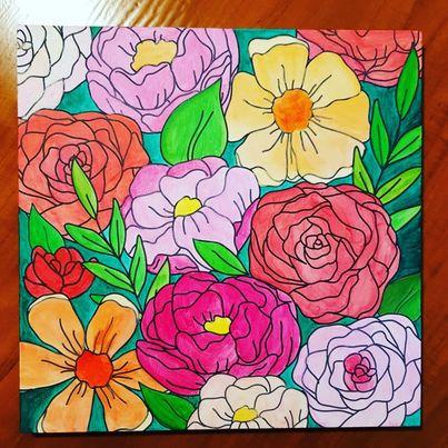 I recently came across a really interesting artist called Ted Harrison. He was a Canadian artist expressing whimsical bright colourful landscapes. I love his vibrant colours and splashes of tiny humans and their pets looking happy, frolicking somewhere in his scenes. I was immediately drawn to replicate my own version, here are some examples of his beautiful work. I love being inspired by other artists.